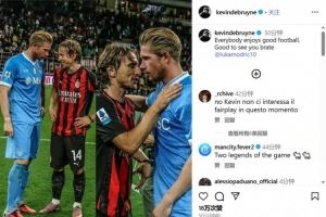 本场比赛,那不勒斯1-2输球。赛后,德布劳内在社交媒体上传了与米兰中场莫德里奇的合影,并配文写道:“每个人都享受精彩的足球,很高兴见到你,兄弟@lukamodric10。”